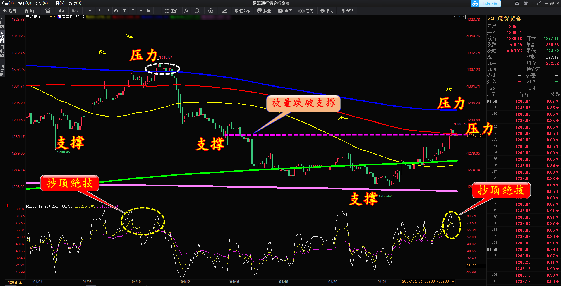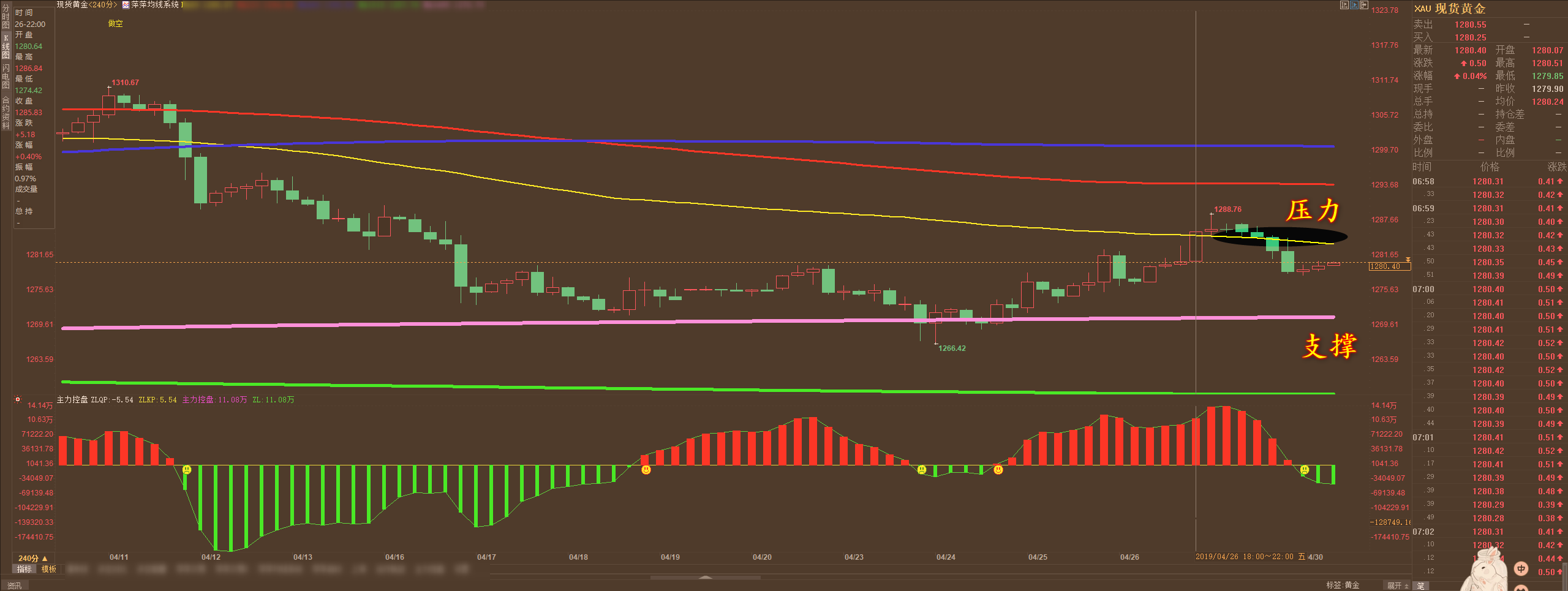 家人们好,昨天我们黄金大赚 10美金,并且相信我的中长线空单也将发挥效用(今天还会更新一个中长线策略);原油主要是白天的提早出局惋惜,不然我们的盈利不至于只有0.48美金,恒指一如既往地稳健(获利331点),白银0.18美金,外汇小赚56点。 行情来看,昨天我们黄金在 1291.5非常精准的再次抓到绝技顶,而黄金目前还是空头趋势,这点我非常确定,原油在今天下午有了一些调整,但所有的走势也是按照我们的预期走的,我们它等上去了再继续高空就好。 黄金分析策略: 通过对黄金小时图解析得知,昨日的行情到达高位一路震荡上行,在最高的重压区的位置时候主力使出了浑身解数急速拉升,,而我们非常坚定的告知我