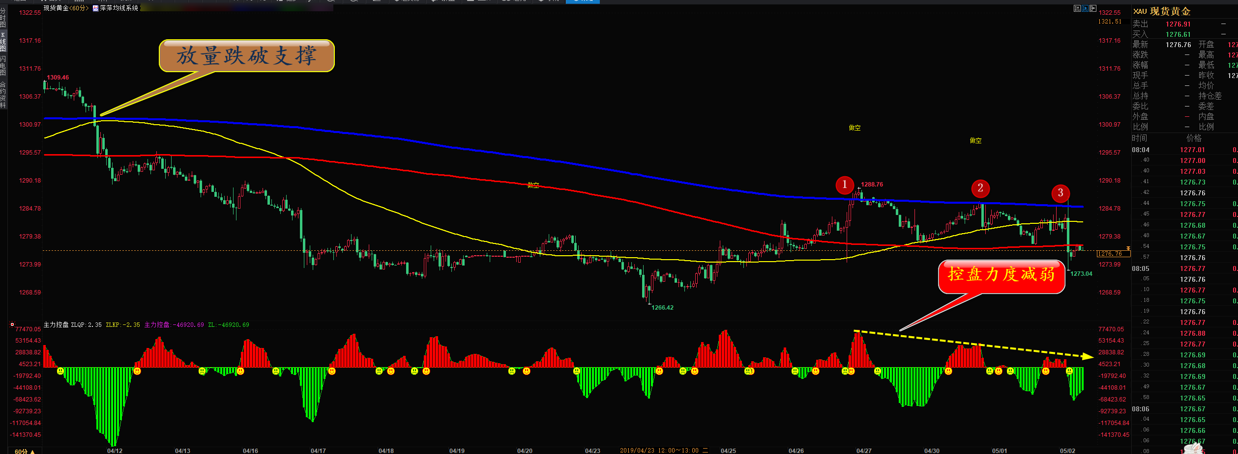 家人们好,五一假期期间我还是照常工作,服务好每一位家人是我宗旨。现在的行情已经非常明朗,就是所有非美品质都处于大空头当中。 就像我昨天分析美指那样,我断定美指会有一个强劲反弹,后来如期应验。明晚有美国的权威非农数据,就从昨天美国 ADP数据的强劲公布值来判断,我们都不难看出非农后的行情走向。 大家原油、黄金的空头持有不动,等价格回调上去,再入场做空,我们继续空死他。这波有望重现上个月第二周 (大概4月8、9、10)那段时间的空头行情,我们会尽量复制上一次空头利润的疯狂收割。 黄金分析策略: 通过对黄金小时图解析得知,自从行情从高位放量跌破以来,近期在底部区域震荡调整,目前在上方主要均线压