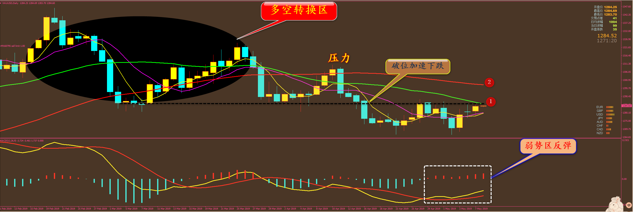 家人们好,我们昨天黄金 1286空,今天又在1278多,目前已经全部获利出局,等待我们下一波操作机会就好。不过昨天晚上的原油被扫掉几单,导致我们的全天的利润被压缩到0.31美金。黄金手上只剩下半月前1310的空单,外汇还是欧瑞的1.14中长线空单。 行情上看,黄金跟外汇走势可以看一个同步,即美指升温预期较高,黄金与非美货币都有更大的下行空间。原油昨天晚上暴跌,今天将有反弹,点位上需谨慎对待,整体还是空头,这点大家放心,只要 EIA不出大的意外,大家还是跟着我继续高空操作。 黄金分析策略: 通过对黄金小时图解析得知,近期行情从低位震荡上行目前在上方 1,2号均线压力位遇阻调整,目前已经改变