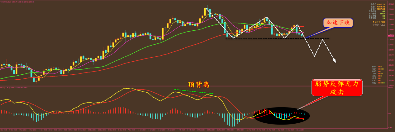 家人们好,昨天除恒指外,其余各品种保持稳健盈利,今天我们的黄金、原油、白银、恒指都大获全胜,晚上肯定还有行情,大家按照我短信为准来操作,尽量要跟紧我节奏,毕竟让家人们盈利才是我最大的乐趣。 目前没有什么大的消息行情,所以我们不必担忧有突发情况出现,黄金价格等反弹后空死它就好,原油也是到上方去做空,可以说是没有什么难度的。 黄金分析策略: 通过对黄金日线图解析得知,近期行情走势呈现震荡下行走势,已经形成了顶部逐渐下移,均线系统已经由前期的上涨转为下跌,目前就等破位加速下跌动作,同时 macd 已经在零轴下方运行,从能量柱来看多头已经无力反击,种种迹象表明行情将会在 1281 的位置进行加速