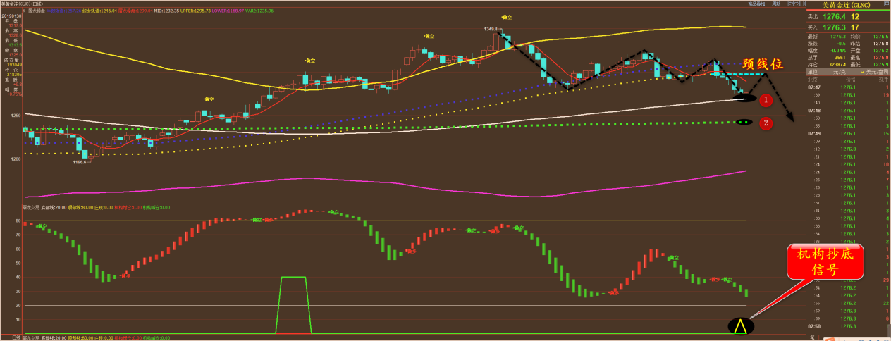 家人们好,今日早上开始,黄金原油双双反弹,黄金反弹没有问题,总体依然是空头行情,大家按我的点位在上方统一设置止损,然后继续做空就好。原油早上的反弹有点反常,我再观察一下,必要时使用我们的备用方案。 黄金策略分析: 通过对黄金 4 小时图解析得知,近期行情自从高位震荡下行以来,在上一个交易日减缓了下跌速度,但是还没有形成反弹,预计达到下方重要均线支撑位反弹上涨,历史经验告知我们,行情在底部位置都有一个单针探底动作,也就是我们平常说说的诱空动作。 目前行情已经接近底部区域,还没有出现诱空动作,在操作上我们可不能急于抄底介入,多线依然受制于 1281 一线的压制,假如突破重点关注上方 4 号趋