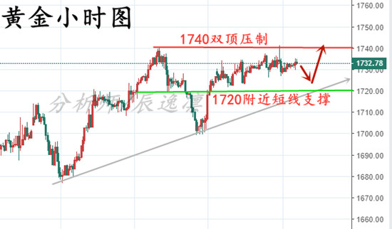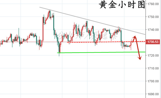 辰逸凛:黄金延续震荡,美盘先空后多!晚间黄金操作策略! 能接受亏损才能享受利润!投资的这条路上心态很重要!——我是辰逸凛,一个奋勇向前的黄金分析师!赚不到钱赚知识,赚不到知识赚经历,赚不到经历赚阅历,以上都赚到了就不可能赚不到钱。你投资迷茫的原因只有一个,就是你本该奋斗的年纪,想的太多,做的太少。 晚间黄金方面: 黄金早盘时段延续周五尾盘上涨,测压至1734一线后有所回修调整,下方跌至5日线附近后有所回弹,目前行情处于1730上下窄幅震荡。 1、从小时图结构上来看,日内黄金走势基本还是符合预期的,回撤低点位也符合预期的落在首个支撑位1722-20区域内。目前来看,短线行情偏强,晚间或有进一步
