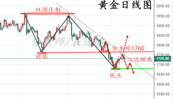 辰逸凛:黄金底部回踩确认,周初区间震荡对待!黄金后市走势分析! 能接受亏损才能享受利润!投资的这条路上心态很重要!——我是辰逸凛,一个奋勇向前的黄金分析师!赚不到钱赚知识,赚不到知识赚经历,赚不到经历赚阅历,以上都赚到了就不可能赚不到钱。你投资迷茫的原因只有一个,就是你本该奋斗的年纪,想的太多,做的太少。 市场方面: 周一(3月15日)亚市早盘,国际现货黄金继续上涨,稍早时刻,金价突破1730美元/盎司关口。归其原因,主要因美元小幅回落和股市走软抵消了美国国债收益率上升带来的压力。且金价上周五在1700美元关口找到坚固支撑,并明显反弹。这样暗示接下来金价有望进一步上涨。 辰逸凛市场分析观点: