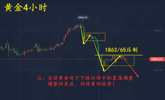 辰逸凛:黄金早盘1860空如预期回撤!美盘黄金仍是高空进行! 投资是一门艺术,不是感性的决定。对于一艘没有航向的船来说,任何方向的风都是逆风。如果你不知道在这个市场中你要到哪儿去,那通常你哪儿也去不了。凡事预则立,不预则废。言前定则不跲,事前定则不困,行前定则不疚,道前定则不穷。树的方向,是由风决定。现在的你是不是还在迷茫中?无论行情暴涨,暴跌,单边还是震荡,你是不是总是没把握住?就是所谓的一买就跌,一跌就割,一割就涨,一涨就追,一追又套,一套再割。那么此时的你缺少的是一个好的领路者。 晚间黄金方面: 1、黄金日内先围绕在1850-40之间窄幅震荡,午盘时段因美元的调整而出现短暂拉升回弹,高