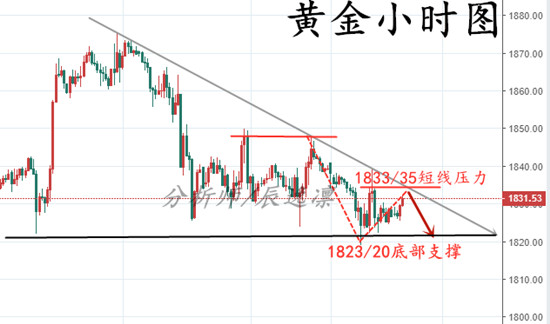 辰逸凛:黄金1838下沽空大赚!晚间继续持空看跌!抓紧上车! 辰逸凛不是神,不能保证我的所有策略100%正确,但我能保证你的资金在我这里能得到你想要的回报。现在市面上应该有很多分析师在写空单解套,辰逸凛不去评论他们的做法是否正确,因为身为同样的岗位很能理解他们的做法,但是辰逸凛想说的是如果一直不跌,你是不是还是无法解套,所以对于那些在你面前画了张“饼”,却一直无法吃到的做法,辰逸凛不屑一顾。在我这里,我没有给你画饼的功夫,我只能给你实实在在的分析和稳稳当当的盈利。 黄金晚间美盘方面 今日黄金亚欧盘的行情是实在是墨迹,好在我们观点很明确,欧就是干空,1838下直接开空,欧盘虽一波强势拉