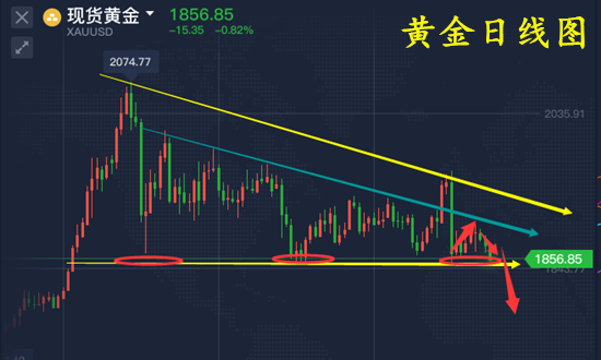 辰逸凛:黄金测试1850后,接下来是破位下行还是反转上涨?黄金后市预测! ①今天黄金还能下跌吗? ②黄金1850没破是不是要涨了? ③黄金是不是要转趋势了? 这种灵魂拷问三连,基本就是现在大多数投资者今天面对的问题,当然我不会一步步去解答,因为在技术面当中,基本就能对这些问题进行整个概括了,包括你该不该看跌,或者说在什么情况下看跌都能在文中找到答案,但我能告诉你的是,辰逸凛个人是不会在这个时候轻易看下跌完结的,你需要先弄明白自己本身对现在的黄金是怎样的态度。 黄金方面: 关于当前黄金转势和能不能下跌这一点: 1、先来看成交量,黄金早上走涨这是事实,并且在今天午盘过后更是以连续的多头头寸拉动了
