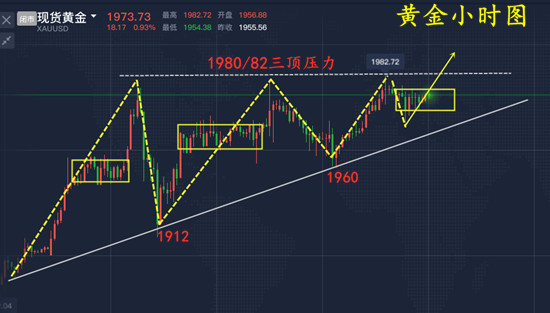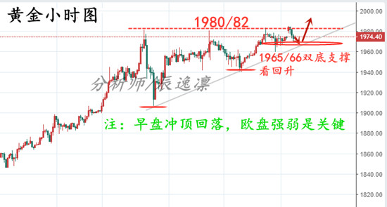 辰逸凛:黄金无惧冲高回落,多头蓄势待破高!1970上直接多! 所有交易原则的东西必须遵守且不可逾越,比如仓位管理,比如风险控制中的止损,剩下的是方式方法的问题,而方式方法因人而异,世上没有完全相同的两片树叶,同样也没有完全相同交易方法的两个人,不同的性格,不同兴趣,不同的品行都会导致方法的多样性,但对于自身而言,坚守一种方法且通过交易经验的累积不断的优化固定下来是对交易有帮助的!如果一天一种交易方法,那么想要稳定的盈利轨迹就会很难。交易之道:紧随趋势,宏观共振,不要孤注一掷,铁一般的交易纪律,欢迎一起交流技术、方法、心得。 市场方面: 本交易日早间开盘后国际金市场出现跳涨,盘面价
