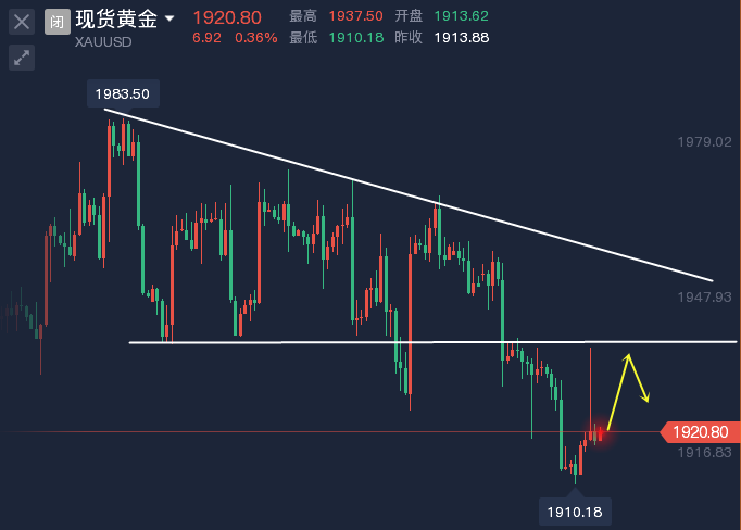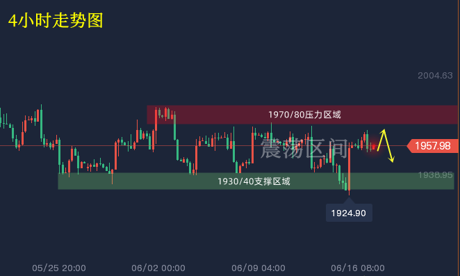 辰逸凛:黄金低位震荡,继续多空争夺!今日黄金走势分析! 犹豫贪心是投资得到大忌,很多时候不是单子不对,不是你运气不好,是你太贪心,赚钱的时候不离场,想着在赚一点我就走,恰恰是这一点,导致你现在的惨状,小亏是让离场,又犹豫了想着回本了我就离场,然后越套越深,做投资千万不要抱着侥幸心理,赚钱不易,且行且珍惜,没有谁的钱是大水冲来的,请对自己的资金负责! 市场方面: 周五(6月30日)亚洲交易时段,国际现货黄金窄幅震荡,目前金价交投于1909.40美元/盎司附近,而隔夜金价探底回升,在一系列强劲美国经济数据推动下,金价一度短暂跌破1900美元关键心理位,创近三个月新低至1892.66附近,但随