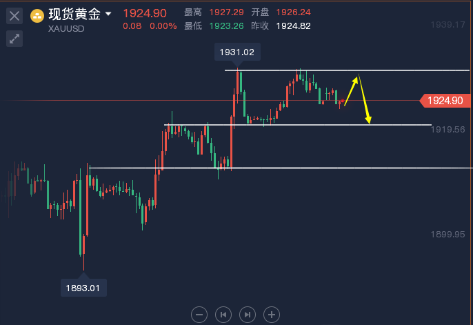 辰逸凛:黄金继续承压,关注回撤动作!今日黄金操作策略! 坚持思路必将成为实现获利目标的有效途径,但是一味的转换方向,短线去博取利润,很多时候患得患失,终归还是要输给市场,不是简单的变化就可以实现,有一段时间可以,但是过了这个时间段会出现瓶颈。不是每一次都会习惯性的实现止盈,重点是思路方向会跟随行情变化而随之变化,重点的方向没有,侧重点在当下的行情节奏,一时抓到利润,而长远却看不到。 市场方面: 周一(6月26日)亚洲交易时段,国际现货黄金保持震荡微涨,目前金价交投于1926.75美元/盎司附近,而上周五欧美国家月份PMI数据表现较差,给金价提供了一些避险支撑,不过该因素大幅增加美元的避险买需
