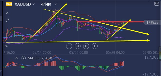 辰逸凛:黄金早盘公开提示1745空,你跟上了吗?现价体验单还不跟? 投资本身并没有风险,只有失控的投资才有风险; 五流的操盘手比技术,四流的比资金管理,三流的比理念,二流的比心态,一流的比训练及综合素质。 做黄金,无非买低卖高,卖高低抛,地价进天价出,所谓的高低价只是你自己的一个定义,价格不重要,重要的是方向。在这个市场里无论是被套还是亏损都是非常常见的事情,我们首先要学会找到亏损与被套的原因,之后想出解决的方法,最后则是总结经验教训,避免重蹈覆辙的可能,只有做到了这三点,我们才能减少发生风险的可能。 市场方面: 国际现货黄金周二(6月2日)涨势受阻,美市盘中最高触及1744.