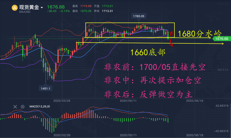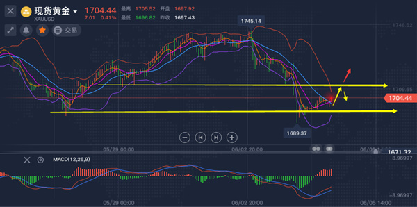 辰逸凛:非农震惊全球,黄金直穿地板!现在开始抄底?跟上就是赚! 做黄金,无非买低卖高,卖高低抛,地价进天价出,所谓的高低价只是你自己的一个定义,价格不重要,重要的是方向。在这个市场里无论是被套还是亏损都是非常常见的事情,我们首先要学会找到亏损与被套的原因,之后想出解决的方法,最后则是总结经验教训,避免重蹈覆辙的可能,只有做到了这三点,我们才能减少发生风险的可能。 市场方面: 周五(6月5日)欧、美市盘中,美元触底反弹,且持续上攻,剑指97关口,欧元/美元冲高之后下挫,最低跌至1.1282;美元/日元大涨,创3月26日以来新高至109.80。而现货黄金疯狂暴跌,最多下挫超40美元,连破1700