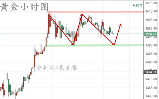 辰逸凛:避险高潮不断,黄金再创新高,今日黄金走势分析! 交易者的贪婪在于总想买在最低点,而卖在最高点!总想抓住所有的利润,总是为盈利的提前出局而懊悔,又总是为错误的策略没有严格止损而拍断大腿,理想很丰满现实很骨感,用在交易上叫做想的很完美,做起来并不是那么回事,因为大家都是凡体肉胎,做不到神仙般的提前预知,所以懂得取舍,认识到本我的弱点从而去规避,交易中只参与自己能看懂能把握住的行情就够了! 回看市场方面: 上一交易日我们给出继续低位渣多的思路,亚盘跌破1490,触及1487位置,这个走法和我们的预期有些出入,打破了1490的支撑,但是结果而言,这个破位只是虚假突破,给我们的整体布局还是带来