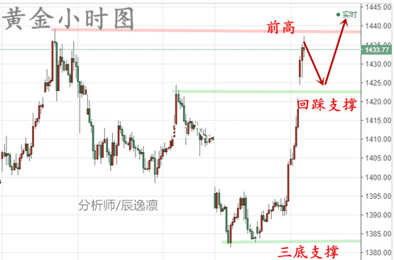 辰逸凛:7.3黄金暴涨之后看新高,非农周再赚一波,今日黄金走势分析! 准确率和利润是检验实力的唯一标准! 趋势投资,大道至简;盈利第一,风控为王! 我们不做死多头,也不做死空头,要做市场的滑头,顺势而为! 基本面决定一切,价格包容一切,K线反映一切,技术面诠释一切! 如果没有交易原则和纪律,技术分析就等于零,将会失去一切! 市场方面: 隔夜金价在向上突破1395-97之后迎来暴涨,创今年以来最大单日涨幅,日内上涨36个美金,日线以大阳线报收!而今日早盘多头再次快速暴涨冲高,最高1436一线,目前金价于1430附近震荡!另外,周一G20利空,我们明确指出第一轮跌幅到位,剩下的就是依托1380-