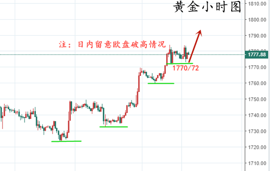 辰逸凛:黄金大阳突破,回落即买入!千八近在迟尺!今日黄金走势分析! 市场整理你纠结,区间突破你胆怯,总为亏损找理由,却不为盈利找方法,市场在转好,仓位在减小!久而之失去了对当初的激情,失去了对盈利的信心,原本积极的心态已被磨灭大半。但是市场照旧还是那个市场,机会永远隐藏风险当中,看懂就抓住,抓住不放松。趋势需要等,盈利需要熬,过程是痛苦的,结果是美好的,最终走向终点的就那么几个,这就是为什么成功人比一般人少的关键原因。 市场方面: 周一(4月19日)亚洲交易时段,国际现货黄金先是冲高回落,目前交投于1778美元附近。基本面上,周末比特币暴跌及美俄关系紧张强化了黄金的避险属性。美元及美债收益率
