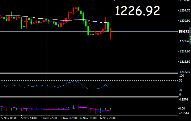 得到一波利润需要智慧,放弃一次错单则需要勇气,有时候你以为天要塌下来了,其实是自己朝着相反的方向或许站歪了。坚持未必是止盈,放弃未必等同认输,与其华丽撞墙,不如优雅转身,给自己一个迂回的空间,学会思索,学会等待,学会调整。投资,有很多时候,需要的不仅仅是执着,更是回眸一笑的洒脱。 周四,黄金价格整体呈区间震荡走势。受美国感恩节假期影响市场交投清淡,亚市开盘,金价小幅震荡,后企稳1225盘整上涨,欧盘,美盘也没出现很大行情。美盘期间,金价承压1228后震荡回落,全天小幅收涨。 消息面: 美联储官员连续发表鸽派言论,支撑着近期黄金反弹。其中特总统指责美联储是个问题,呼吁降低利率,导致美元承压,黄