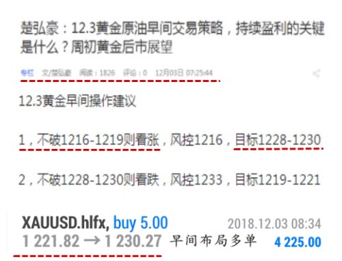 善战者,无赫赫之功 善医者,无煌煌之名 善盈者,无夸夸之言 我是楚弘豪 资深贵金属分析师 超级复盘周一----记录每个交易的瞬间 由于上周感恩节美盘提前休假的原因行情一直在区间1220-1230震荡,本周初自然延续上周的震荡行情,所以早间我们寻找低点 1222-1224 布局多单,既然确认是周初是震荡行情,高点 1225-1227 布局空单也是没有问题的,日内一共操作 3 单共获利 9 个点。 超级复盘周二---记录每个交易的瞬间 周二日内黄金一直走小区间1220-1225震荡,时而猛跌时而拉涨着实让人摸不清头脑,但是有一点是可以看出来的,那就是黄金始终没