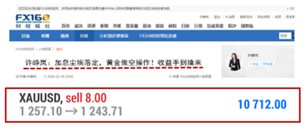 许峥岚:黄金投资赚了5千万,怎么做到的?信则跟,不信则看! 带着目标出去,带着结果回来!成功不是因为快,而是因为有方法!想做的人永远在找方法,不想做的人永远在找理由!世界上没有走不通的路,只有想不通的人。我是许峥岚,投资路上有我--为你保驾护航! 一转眼2018年已经过去,在2018年许峥岚(ygj58后加131)共给出768单,一个月最多72单,平均每日不超过2单准确率平均高达87.60%,一年获得净利润4749.5万人民币。永远不要羡慕别人拿多少利润,你的利润绝对和你的资金相匹配的。感谢有你的关注和信任,2019年我们再接再厉,唯有你的信任不敢辜负! ===将利润进行到底,后市黄金走势分