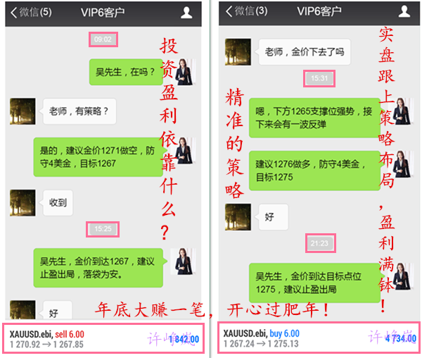 许峥岚:黄金加息前夕已拿下11点,后续翻翻利润等你拿! 近期总有一些朋友跟峥岚抱怨年底行情越来越不好做了,赚不到钱,很是闹心。但是你有没有反思过原因呢? 其实在峥岚看来黄金的行情什么时候都有,就看你能不能抓住!我想大多数投资朋友听到这话都会觉得峥岚是在说废话吧?我们回过头来想想,在能赚钱的行情你没有赚钱,在不该亏损的时候你又处处亏损,难道这些不该反思总结吗?操作不当就改正,频繁操作就减少次数,老师实力不济就换人。还是说继续加金,继续亏着,继续安慰自己:一切都会好起来的,亏损总会赚回来,但是事实是一切都会越来越糟,亏损也会越来越多,最后遗憾离场。上周一位女客户对我说,做这个跟对人真的很重要,我