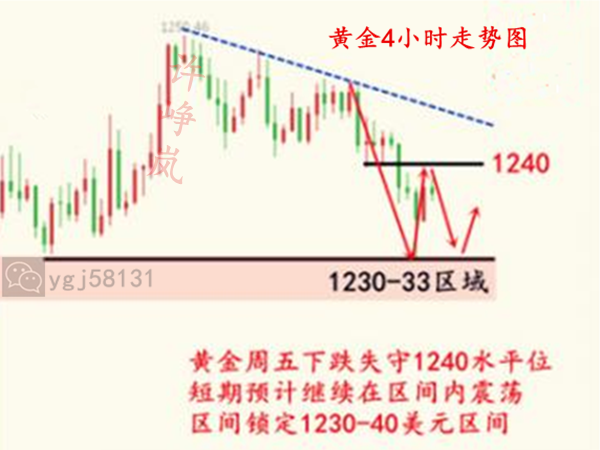 许峥岚:12.14黄金1238未破位前,日内继续看小区间震荡 顺势而为,轻松投资。大家好,我是许峥岚。在投资中,如果市场走势和我们的研判一致,那是最好不过的事情了,一切都得遂所愿、顺风顺水,操作计划和行情走势完美契合,日益自然与日俱增。但如果市场走势和自己的观点以及操作完全相悖,我们就要格外小心了。 市场的非理性导致价格出现过度上涨或下跌,毕竟市场泡沫几乎在每个时期都不同程度地存在着。但即便如此,我们也不可以逆着市场趋势操作。接下来我们看一下日内黄金走势情况。 黄金从技术面上来看,本周金价已经连续三个交易日试探了日线MA5日均线,而昨日日线虽然录得十字小阳,但收盘价却处于MA5日均线附近,这