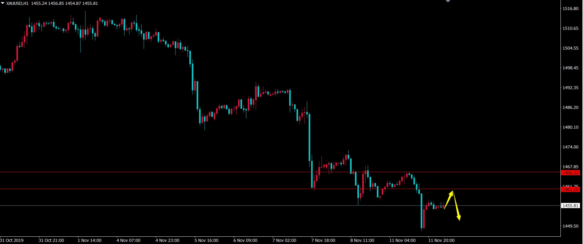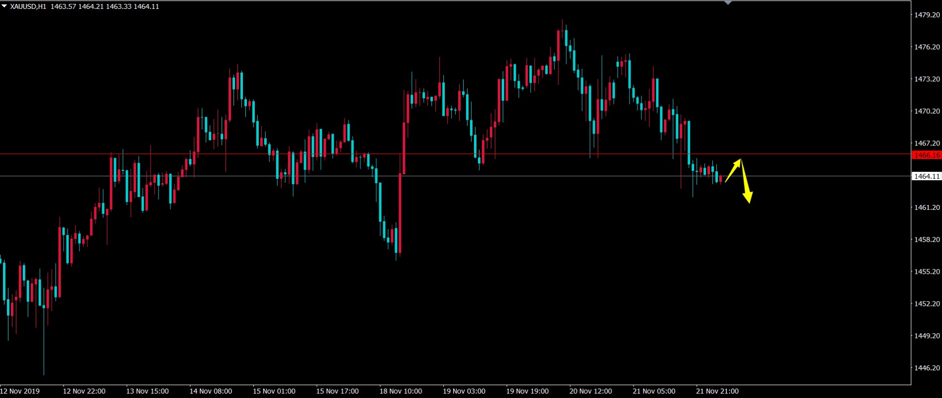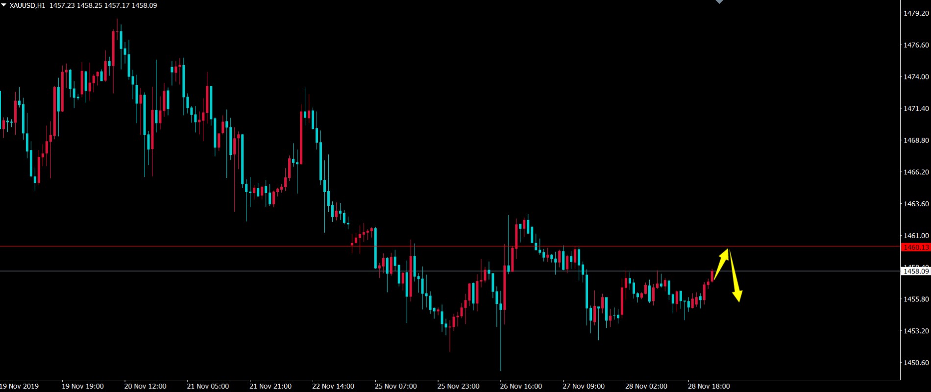 渝州江上忽相逢,说隐西山最上峰。百里西风禾黍香,鸣泉落窦谷登场。大家好,我是你们的老朋友,关渝禾! 黄金昨日窄幅整理,受感恩节部分市场休市影响。黄金波动空间受限,最高1458,最低1453.70,空间收敛。日线收盘星K线,实体空间小,仍处于整理阶段。 日图反复逼近半年线有轻微失守迹象,今日周线以及月线收官。周线受到上方5周线压制,偏于回落收低,即使今天可能出现反弹,但只要不站上5周线继续看回落,今日仍受到感恩节提前休市的影响,空间相对依旧受限,不排除延续窄幅整理的走法。上方压力1460至1462,下方支撑则在1450至1446间。主趋势倾向反弹高空。 短线4小时横向窄幅整理,K线实体