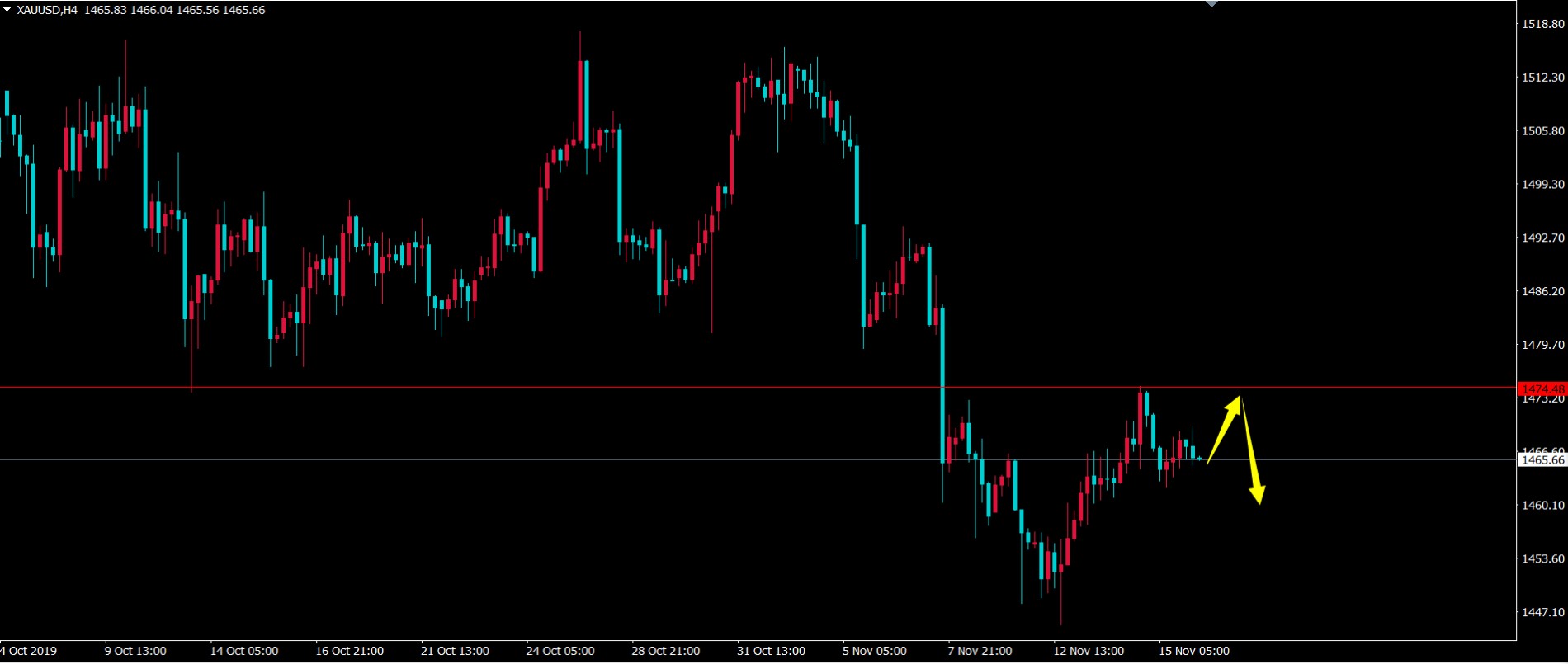 渝州江上忽相逢,说隐西山最上峰。百里西风禾黍香,鸣泉落窦谷登场。大家好,我是你们的老朋友,关渝禾! 黄金昨日震荡承压回落收低,亚盘反弹1475附近承压,欧盘反复上探不破高,最终走跌,美盘时段击穿1465并收盘在此位之下,日图收盘中阴线。 从周线来看,本周长时间处于整理修正当中。上方接近5周线承压,周尾有转阴线回落的迹象。那么周线小阳反弹后不连阳,隔周倾向回落。日图长时间星K线整理后,初步确认后反弹高点预估就在1478.70附近停止。昨日收盘情况来看,今日有进一步回落迹象。 短线4小时承压回落跌破前一日低点1466,且收盘在之下,小台阶反弹通道被破坏,初步确认反弹结束,虽然时