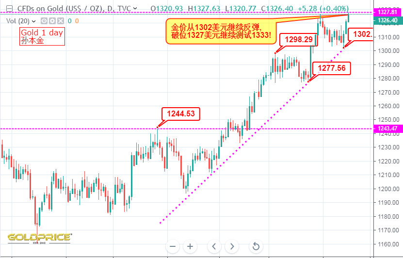 不平凡的一天刚刚结束,新一个交易日又将开始,Wall street 又开始了平淡的一天,交易还在无休止的进行,10年期国债收益率变为正值,美元指数在联邦公开市场委员会之前保持绿色。周三以来黄金涨势不停,连续五天上涨,触及四月底以来的最高点1347美元附近。 本周早些时候该货币对突破关键的1325美元阻力位,这一事实帮助该货币对获得了强劲的看涨势头并引发了技术性的高涨。此外,由于全球经济增长担忧以及围绕英国脱欧和美中贸易冲突的不确定性,主要货币难以找到需求,黄金继续寻找需求作为更安全的投资选择。 与此同时,在联邦公开市场委员会公布其上次会议纪要之前,美元指数紧随96.60附近的小幅日内涨幅,使