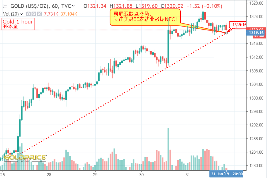 岁月就像一把杀猪刀,不知不觉又是一年春节时,物是人非,感时落泪,岁月就是一把无情的杀猪刀,紫了葡萄,黑了木耳,软了香蕉,时间就是一块无情的磨刀石,平了山峰,蔫了黄瓜,残了菊花;经历就是一个无情的矿厂,挖了山丘,损了钻头,黑了河沟。远处的钟声使我想起归家的讯号,年月把拥有变做失去,疲倦的双眼带着期望,今天只有残留的躯壳,赚钱不赚钱,回家过年...... 周初,普遍的谨慎情绪继续支撑着金价避险需求;多变的美联储预期使得美元多头处于守势并保持支持。焦点仍然集中在最新的FOMC政策更新及高层中美trade谈判上。黄金最终突破亚盘盘整阶段,并在最后一小时攀升至新月高点,约1306美元区域。在昨天的震荡