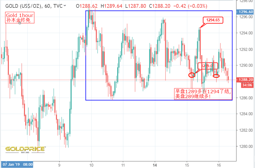 整个贵金属市场在跌宕中起伏不断,今日操作有起有伏有多也有空,这也是区间震荡行情的操作要点,但是切记莫恋战,这样的行情怎么做都不会有大亏,大赚也是不可能的.但仔细一琢磨,由于 黄金 期货目前上涨4.90美元(+ 0.37%),固定在1293.20美元。在交易至1295.40美元的高点后,黄金稍微疲软,收盘时盘中高点约2美元,也跌至1287.60美元的低点。对于投资者来说,这个范围区间操作,即使当天获得了可观的收益,价格仍然在一个狭窄的范围内。 动态价格波动的最终结果是多空互不相让,各取所需,其中当 黄金价格 在1月4日跌至1278美元的低位,以及上升至高点1300.40美元,从那以后, 金价