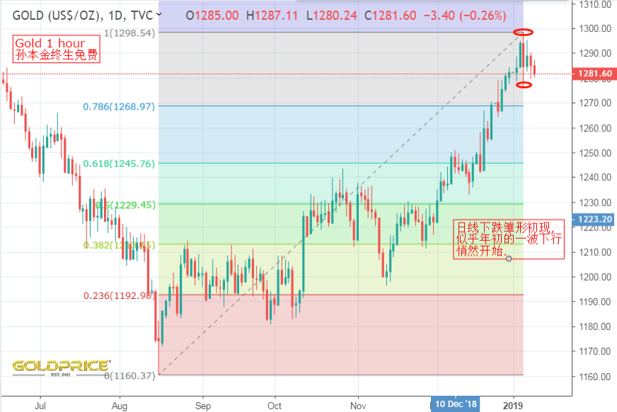 金价 本周波幅相对较大,在上周持续上升,迎来了自2018年8月份至今的高点1298,虽然暂时未突破1300关键阻力水平,但农历新年前还是有机会的,许多投资者年前都是重金出手,希望可以奋力一博,但是行情似乎不太给力,在近4个月的多头单边上升过后,留下的却是上下震荡喜忧参半的趋势,尽管如此,我们仍然审时度势,抓住了几波短线行情,并没有与之交臂. 由于12月通胀数据达到美国预期,美元指数收复日内跌幅,转为正在95.50上方。看起来下周仍有上涨情绪发生。1298到1276美元,近20美金的波幅,让不少投资都多空转换,金价在上周五攀升至1295美元区域后,早盘遇到强烈的看跌压力,并在寻求支撑并进入巩固