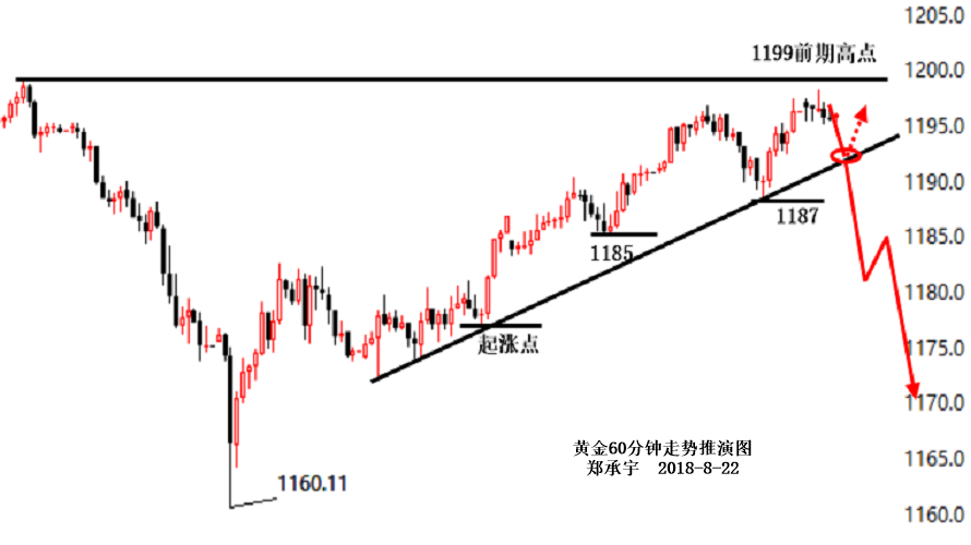 说回黄金上来。虽然日线收阴,但还只是单阴,在震荡行情中走出循环的概率较大,是否延续性下跌,还需要看今日的收线,只有连续性破位下跌,延续才能跟得上,否则就只是震荡。今天,操作的要点则是等时间,看欧盘的强弱,前一日下跌,今日能否续跌的关键在于前一日底部1183能否再次跌破;能否反弹的关键在于1194的阻力位能否突破,这就是2个关键的位置,哪边突破,方面就在哪边。 这里,只需要关注3个位置即可。第一个,1183,这是昨晚的低点,也是一个双底位置;第二个,1194,这是昨晚大阴线的顶点,也是今日的强弱分界线;第三个,1204,昨日早间的开跌位置,也是1208-1205下行趋势线的压制位置。 可能的走
