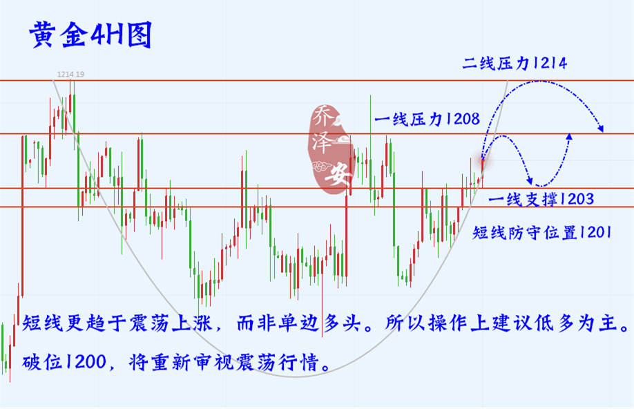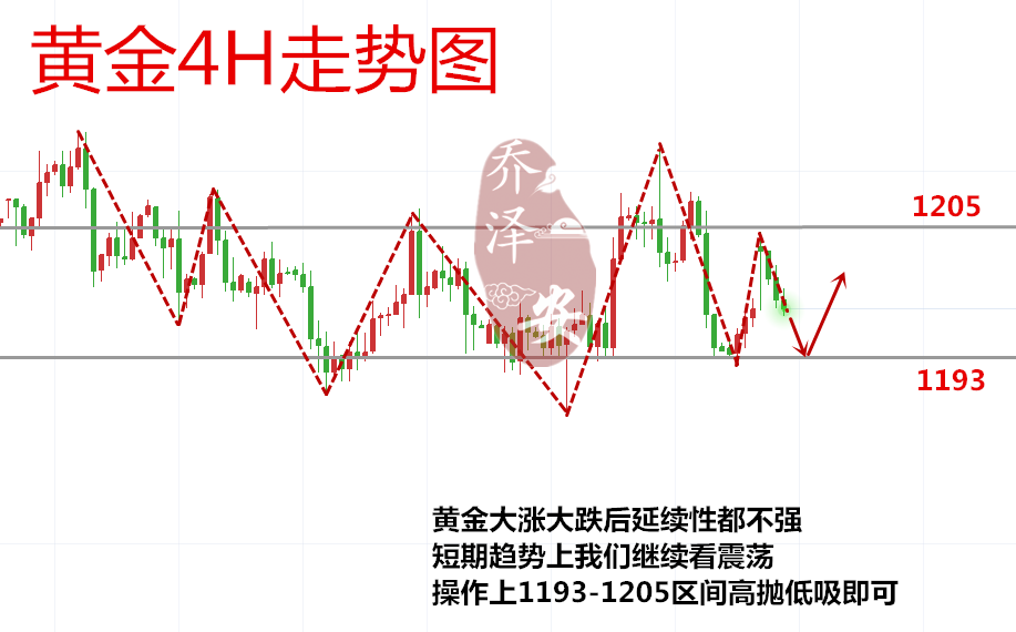 乔泽安:9.18黄金 多头好景不长 ,短期看震荡区间内 高抛低吸 每一次的投资都是一次科学的分析,不是感情的博弈;每一次的建仓与平仓都是专业的体现,不是情绪的释放;控制风险,稳定盈利!各位朋友 们早上 好,我是首席黄金分析师乔泽安。 ——操作上 1193-1205区间高抛低吸 即可 黄金价格昨日呈单边上涨的状态,结合上周五的下跌,刚好走出一个V型反转;不过金价隔夜最高触及1205附近后便回落走弱,当前 黄金 短线延续回落跌 至1198 位置;其实 泽安 一直在强调,黄金行情大涨大跌之后,延续性不强;因此多数时候其实是走震荡的,那么黄金昨日上涨之后,今日短期的趋势便先看回落