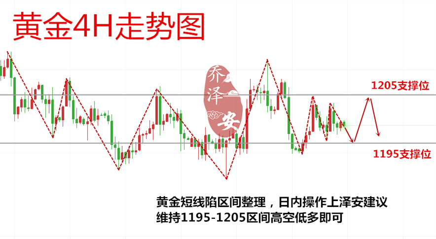 乔泽安: 9.19黄金 震荡行情赚钱走一波,日内 1195-1205区间高空低多 每一次的投资都是一次科学的分析,不是感情的博弈;每一次的建仓与平仓都是专业的体现,不是情绪的释放;控制风险,稳定盈利!各位朋友们 早上 好,我是首席黄金分析师乔泽安 ! ——日内操作建议维持1195-1205区间高空低多 黄金日线图走势较为平稳,目前没有走出趋势,上周五在下方1192一线得到支撑,昨日继续在支撑位震荡,最高上探1204一线。布林带缩口后,日K线短期仍然是在布林带上下轨之间震荡,只是区间对于日内短线来说还是比较大,不过可以明显看出,黄金是围绕中轨为水平位走调整,短期预计仍然在这位置上下
