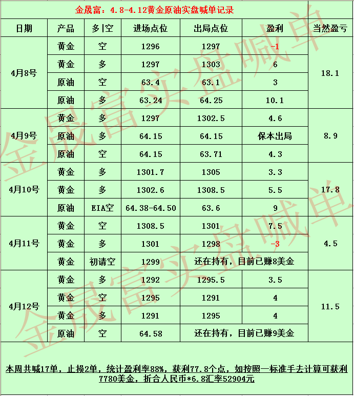 文章摘要: 4.12投资国际黄金原油怎么分析行情?4.12周五黄金多空怎么看? 2019.4.12做现货黄金投资亏损怎么挽回损失?4月12号黄金原油短线怎么操作?当前黄金阻力位和支撑位在哪里?新手投资黄金原油该怎么做单?今日GOLD伦敦金还会涨吗?近期有哪些消息面会影响黄金原油走势? 美元涨跌对黄金有什么影响? 为什么你的操作总是套单,黄金原油被套单如何解.套?如何防止爆仓?欧盟脱欧对黄金有什么影响?今日周五会发生黑天鹅情况吗? 能力不在脸上,本事不在嘴上!在投资的路上我不敢保证能带你赚多少,因为只要你配合,盈利从来没有上限,每一位学员我都用自己最大的能力为其谋取利