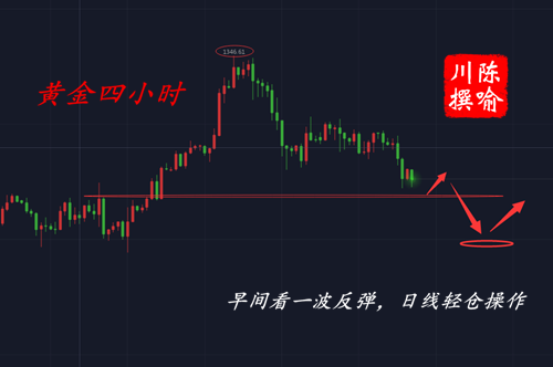 手捧一杯咖啡,坐在办公室靠窗的位置,享受着这换季的气息。其实生活也这般如此,恬静自然,如此安好便是。对于生活中让自己不顺心的事大可暂且放一放,看看窗外,世界还是非常大的,为什么非要让这些小事阻碍自己的内心呢?收拾一下自己浮躁的心,其实生活还是非常精彩的。 来说一下大家关注的重点吧。希望各位投资朋友在能够抽时间适当关注一下日内行情,这样做单能够更好应对,从容不迫。 黄金在连续的上涨行情之下,喻川昨日在文章分析当中就已经提出日线级别走势上的MA5和BOLL带出现背离状态,这种行情之下黄金有望展开调整,同时需要关注4小时级别的BOLL上轨,一旦缩口,那么将加大回落概率;而昨日黄金在连续调整之后、B