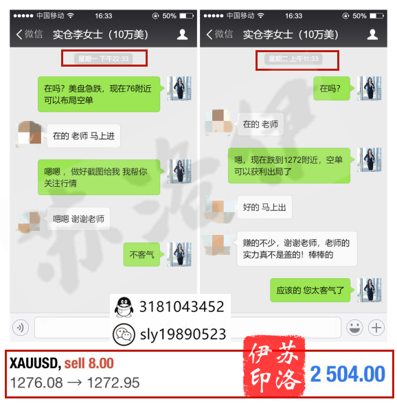 君行千里我相送,君到跟前我相助,市场利润十分,我愿倾尽全力为你独取九分,实力让我有此底气,青海长云暗雪山,不破楼兰终不还。大家晚上好!我是你们的老朋友苏洛伊。择一良人奋不顾身,择一良师扭亏为盈,如果你还在市场彷徨失意,现在找到洛伊也不迟! 黄金现价精准进出,顺势空单完美盈利! 今天白盘的行情,黄金一直是处于阴跌的趋势之中,昨晚洛伊看准时机,就让自己的实盘学员在1276附近进空,今日下午欧盘开盘前,空单成功在1272附近止盈出局!空单波段利润轻松入袋,虽说没有大盈利,但是行情把握的准,小盈利也可以慢慢积累,积少成多!在这里,洛伊想说,当你还在为行情多空难测而烦恼时,我们的单子已经获利而出,利润