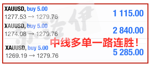 眼界决定视野,格局决定资产!没有眼界,即使时光回溯,把你送回2008年以前,你也不能成为王健林!没有格局,即使你站到马云的位置,也必将跌落神坛!平凡的人不必做着太伟大的梦,脚踏实地依然能够成功,如果你怀揣着一份投资的心,钱包里还有着几十万上百万的本金,来这个市场你一样的有机会收获两倍三倍甚至十倍的利润,关键在于你的格局,在于你的选择!大家好!我是你们的老朋友苏洛伊,最近一直在忙着带实仓,这才得空给大家更新文章,望大家见谅。接下来,就让洛伊给大家说说最近的行情吧。 最近多单大获全胜!有跟上的朋友们吗? 最近黄金的行情相信大家也看到了,洛伊的思路坚定看多,昨日早盘1274直接多,美盘初请数据利多