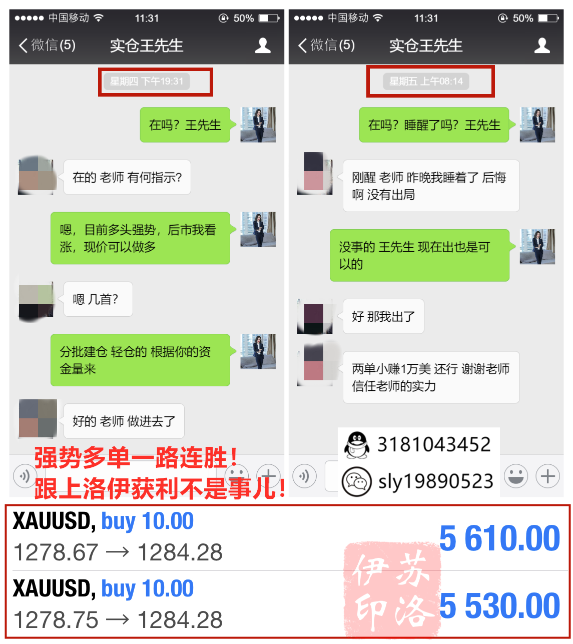大家好!好久不见,不论何时,我依旧是你们的老朋友苏洛伊。洛伊半个月的“空中飞人”旅程终于结束了,这次终于可以跟想念我的朋友们以文章的方式见面了,心中不觉一阵阵开心。熟悉洛伊的朋友们,也知道洛伊08年入行,混迹黄金交易至今也走过来十个年头,这个市场见证了奇迹,也看透了人心,洛伊深知,投资之路不会一帆风顺,这中间有止损,有止盈,但同时这却是交易之路。洛伊这里没有100%准确的做单方案,也没有零风险的投资计划,却有稳健操作的方法。单我不怕做错,因为我有实力去赚回来。多的废话不说,先让我们来回顾洛伊近期带单操作,有图有真相。 周四操作:多单一路加仓,利润轻松入袋!你还在观望? 相信有看过洛伊昨晚的文