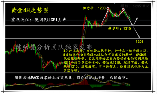 陈弦蔓-前言 大家上午好!我是陈弦蔓。交易的过程其实是简单----复杂----简单的一个过程,开始的简单是因为我们对市场的了解太少,而中途的复杂是因为我们开始了解市场了,但是不能很好的驾驭,所以会被市场的变化吓到,觉得行情很不好把握。但是等到我们深入了解了市场,就能觉得豁然开朗了。 希望大家能够明白投资是一个学习的过程,另外投资如万马过独木桥,有钱的人太多,但是能赚到的人都是少数。这时候,有一个好的伙伴、好的指导老师就显得弥足珍贵。弦蔓相信弦蔓在带你盈利的同时还能带你领会到投资的乐趣。 陈弦蔓-黄金行情回顾 回顾周一,两大数据打压下,美元承压下行,黄金再次反弹。非美货币涨势喜人,唯有
