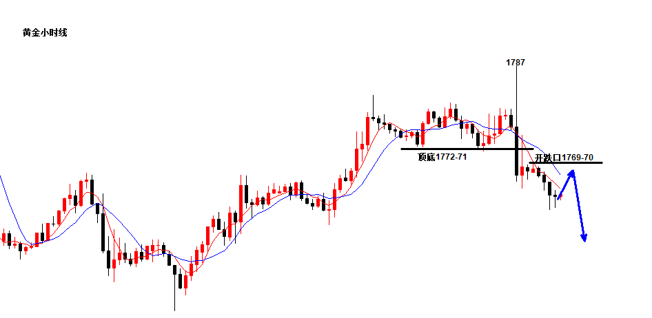 今天的文章请大家仔细看清楚了,本文涉及到的主要内容有: 1、黄金日线下跌第5浪是否构筑完成? 2、小时线是否正在构筑下跌5浪中的第4浪和第5浪? 3、昨日黄金大跌后,今日该如何操作? 随着昨日金价从1776大跌至1737,行情变得越发明朗,特别是对于本周一直强调的日线“下跌五浪”的推演,我个人变得更加有信心。 如日线图所示,1833-1782构筑1浪,1782-1808构筑2浪,1808-1741构筑3浪,1741-1787构筑4浪(4浪高点虚破1浪低点,视为非标准形态),昨日大跌后,1787-37过程为50美金,1浪的幅度为51美金,按照5浪≈1浪幅度原则, 1787-37基本确定5浪构筑