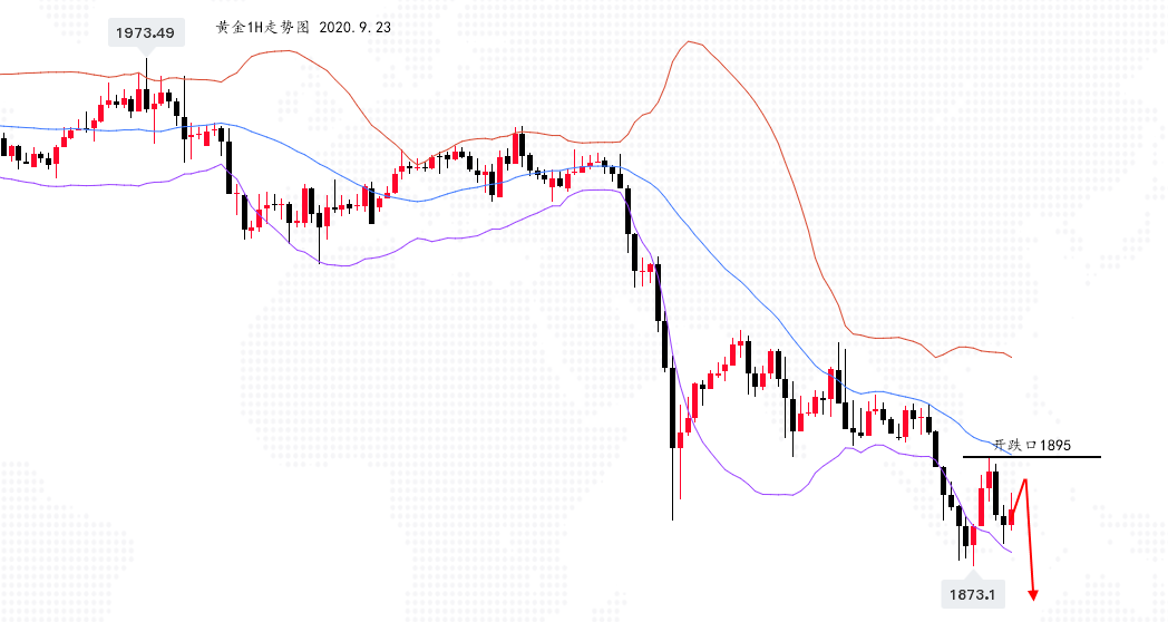朋友刚才发消息说昨天喝的有点多,口干了一晚上,现在口都是干的,哈哈,我笑了!中秋节逢国庆节,邀约两好友,三人共饮两瓶白酒,吃了八个菜,计划着趁年轻去一趟西藏,这种谈笑风生很久没有过了,有时候成年人的开心朋友之间聚聚就可以了。新的一周,祝各位节日快乐! 上周五,受川普确诊新冠肺炎影响,黄金价格从1889一度上冲至1917,不猛,也就两根阳线的事情,随后非农利多,很可惜并未能将黄金推到新的高度,而是承压1917转跌回落,日线最终报收十字K。 今日早间,黄金价格平开低走,小时线承压1904走出连阴形态,技术层面讲延续了上周五凌晨阶段的弱势走法,但这并不意味着今日一定是弱势。 从日线图上看,黄金自9