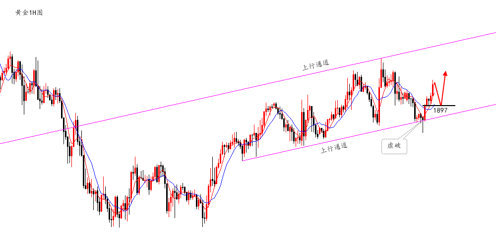 不知道是年纪大还是身子比较虚,我这个人特别怕冷,才15°的天气恨不得把棉袄穿起来,晚上好,各位,先来复盘今日行情吧! 黄金,今天在1H上行通道内走了一波V型反转,首先亚盘承压1904下跌至1886,后欧盘依托1886上涨至目前的1908,“V型”就这样悄然而至。 很幸运,我们日内根据“通道线”原理安排了一次1892-1的多,终极目标1904-08也如期而至,完全符合我们日内文章《沈皓南:黄金日线偏强震荡首选低多,原油陷入宽幅震荡暂观望》看多黄金的观点。 既然已经突破早间开跌口,那么美盘肯定不会弱,也就是说美盘无论如何也不要碰空单,晚间我们应该尽可能的继续找位置做多,但不能高位追多,因为现在还