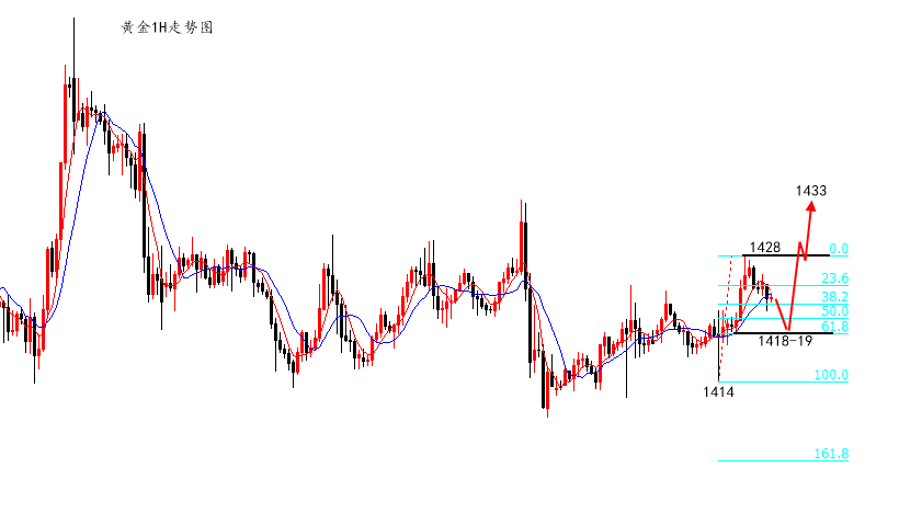 上班路上刷了一段抖音,92岁退休人民教师,2000年至今坚持19年为学生补课,没有收一分钱,记者问为何不收,他的回答是,在物质上我的要求不高,精神生活要高标准,记者说挣一点点钱不过分吧,老人说我拿着国家的工资啊,取之于民,而用之于民!太感动!这个社会像老人这样的教师真不多了,希望老人长命百岁,以后我的小孩上学,坚决不送红包! 周一,黄金多头走的并不顺畅,亚盘冲高1424回落,欧盘虽然依托1418上升,但美盘直接闪跌1414一线,怕是吓坏了一批坚持作做多的朋友,随后依托1414快速探底回升有又重新让多头燃起了希望。 隔夜,在降息消息面刺激之下,黄金价格走得比较强势,直接来到1428一线,上周五