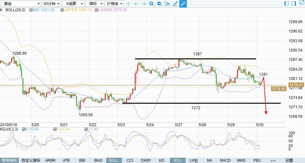 周一,黄金因美阵亡将士纪恋日提前休市,并未见太大波动,整个交易日除了早间冲高1287带来些许精彩之外,其他时间均处于1285震荡,日线报收小阳十字K。 这种行情,开仓的朋友简直就是真爱,不管做多还是做空,都不会有利润,反而增添了盯盘的烦恼,倒不如我们过得洒脱,干脆空仓洗洗睡,你可以说我们猥琐,但我认为这是稳健。 今天早间,黄金价格平开高走1286,随后冲高回落,跌破前一日凌晨低点,小时出现连阴信号,这能说明什么呢?只能说明上周四的大涨延续性真的是极差,当然,前两个交易日未能向上突破1287-8才是我判断多头延续性差的重要依据。 目前,黄金价格已经从1286下跌至1282一线,接近1280重要