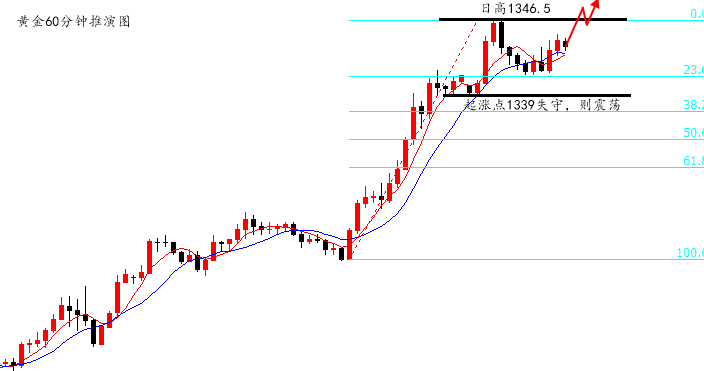 晚上好,我是你们的老朋友,陆离! 简单说说黄金吧。今天,金价并没有表现的很强势,昨日大涨之后,今日形成高位震荡也在情理之中,还是我之前说的, 上涨行情中的修正是一种“以时间换空间”的手法。 虽然,未能延续昨日强势,但不要去碰空依然是首要考虑的,明显的多头行情,一味的去找位置抄顶,是非常不明智的选择。 今天,早间上涨1346.5,后阴跌向下,午后及欧盘依托1341-2反弹,欧盘没有跌破起涨点1339,说明还处于强势之中,只不过这种强势需要修正之后才能表现的更为淋漓尽致。 我们早间公布的1342-40分批多单,显然已经进场了,调仓的条件是起涨点1339跌破,目前没有跌破,而是在欧盘时段形成反抽,