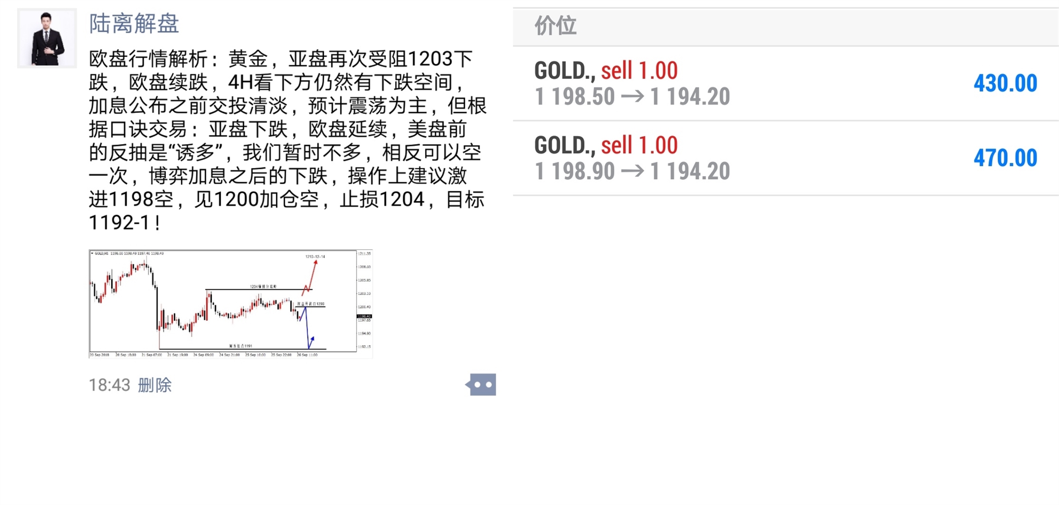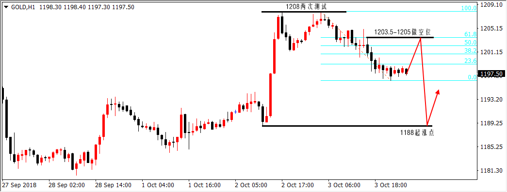 骑马坐在后面的人,无须掌握方向,闭上眼睛也不会迷路,我们疯狂地往前跑,有人却只看到我的分析,却摸不到我对市场敏锐的洞察力,站在屋外的人永远不知室内的美,我们处于什么方向不要紧,要紧的是我们正向什么方向移动。 周三,ADP就业人数表现强劲,加上鲍威尔的鹰派言论,美元重获上涨动能,黄金则再次承压,失守1200关口,无数因为周二大涨在1208附近追多的朋友折戟沙场。 而笔者在昨日白盘文章《陆离解盘:暴涨20点未必有延续,黄金1201失守继续看回撤!》中明确强调过当前行情仍然处于震荡,不要因为前一日大涨20点而盲目追多,相反以看震荡的观点安排了一次1205的空,高位追多的你,只看到我的分析,没看到我