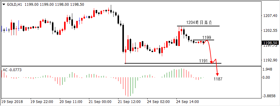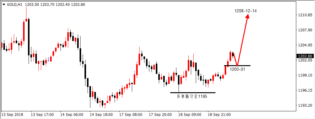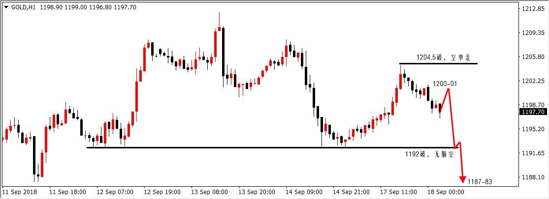 会在乎青春的人,就势必已经不在青春里了,会察觉自己在流浪的人,就势必将要结束流浪,会期望盈利的人,就势必已经亏损太久了,会感慨时间过的太快的人,就势必充实踏过了2018大半年。化雪总比下雪冷,就好比破位比震荡刺激。期待已久的区间仍然未被打破,底部横盘时间过长,空头必将二次光临,多空的十字路口,总有人踏准了节奏,也有人就这样潦草的画上句号。 周一,黄金以1192为支撑慢阳上涨,亚欧盘多头联动,美盘延续这种势头将金价推到了1204.5高位,很可惜,延续性问题还是对多头造成了致命的一击,凌晨回落1199注定再也翻不起什么大浪,尽管日线转阳,但终究逃不过底部震荡的命运。 操作方面,必须得提一下,我们