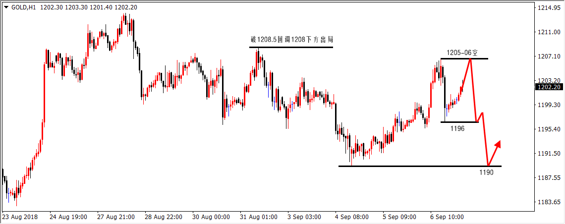 低了头的坚持怕没了方向,看着天的奔跑怕偏了轨道。时间,或许从来没有教会你任何东西,但教会你不要轻易去相信神话。能让你生气的行情,说明你还没有驾驭的能力,能让你生气的朋友,只说明还在乎那残余的友情。做好那个真实的自我,光环下的别人别去效仿,你就是那个自己心中的神! 周四,黄金走势呈“倒V”。亚欧盘依托1195连阳上涨,美盘前无回撤逼空续涨至1206-7,美盘后并未延续强势,以1206-7为阻力高台跳水1196一线,倒V成型,震荡继续。 操作方面,昨日美盘行情解析明确提示1H、4H随机指标均出现超买信号,并且大趋势偏空,短线必然震荡,不建议高位(1205-06)追多,仁兄你是否上心了。实盘方面,