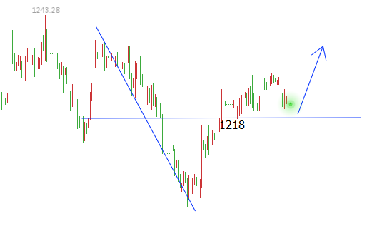 昨日感恩节休市影响,市场交投清淡,黄金整体保持居高震荡,最终日线收得一小阳星线。日图均线交叉向上,整体保持偏强格局。自周一以来,金价延续了上一周的反弹行情,只是力度方面没有上周那么强势,方向上还是做了进一步的延续,目前一直徘徊在1227附近,1220成为了比较明显的多空分水岭。 整体守住1224附近上升,全天波动并不是很大。美盘休市交易清淡,可操作性并不是很强,但并不影响短线的判断与操作,只是利润空间可能没那么大而已。目前1224将成为多空分水岭的位置,短线价格继续看上升为主,早间开盘到现在其实没有太大的波动,而是以震荡行情为主,少一点浮躁,多一些耐心。持有昨日25-26多单,