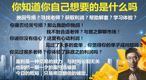 多少个梦,多少次想,多少回在梦海里,种植一株叫梦想的树。多少个梦想,掺杂着多少汗水,揉合着多少泪水,终于邂逅今生最美丽的花开。终于我们将得到我们想要的。寻找的旅途,除了艰辛还有美好,除了坎坷还有你认真思考认真走过之后坚毅的心。 祝交易顺利! 因为你们,心存回馈! 市场8年的沉淀,让我从一个年少轻狂的老师成为了现在你们眼中的金市大师,我很欣慰也很自豪。在这之前到现在改变的过程中,我是非常痛苦和煎熬的,那种心酸无奈真的太难受了。我现在的成就和能力是我一分一秒从实战中历练出来的,我要把它反馈给你们,给你们信心。因为薛庭之的所有离不开你们的陪伴和支持!(联系方式见文末) 我们要活成投资市场里面的标杆