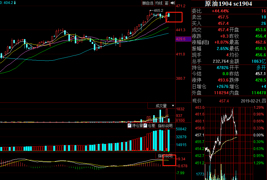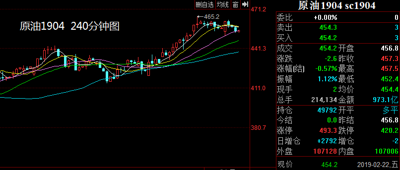 2.21日期货分析,原油回调在即,焦炭螺纹泛红机会来临 古语有云:“凡事预则立,不预则废”,赚钱,最重要的不仅是靠正确的观点,更需要的是合理的策略,计划,交易只有计划才能为自己打开财富之门,不然就如同烟花一样,璀璨但易逝! 原油1904: 原油1904:原油周初延续上周尾盘的上涨,昨日日线收阴,收了一个平头下影线的阴柱,预示行情上方压制比较严重,本周末尾两天原油行情与机会走一波下跌的趋势,上方以高点467.9作为最佳空单布局点位,下方430作为空单盈利出局点,注意把握机会。 期货螺纹: 期货螺纹:日线来看,均线指标向下运行,价格昨日形成新低3578,上方压制重重,目前受压于10日均线3700